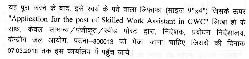 Patna Skilled Work Assistant Online Form 2018 (Center Water Commission)