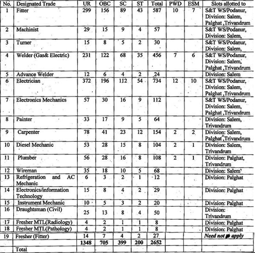 Southern Railway Trade Apprentices Offline Form 2018 (Southern Railway)